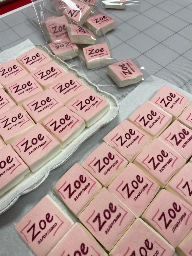 Imprimimos sobre galletas, macarons, marshmallows, dragées y otros dulces (e incluso algunas bases saladas). Si tienes un producto específico en mente, consúltanos.